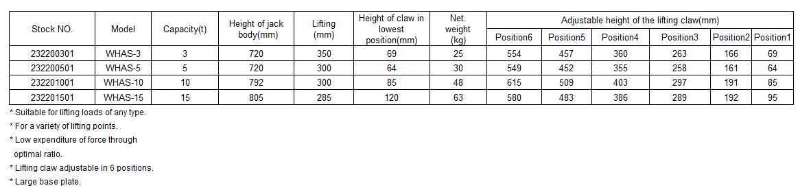 WHAS Adjustable Claw Mechanical Jack