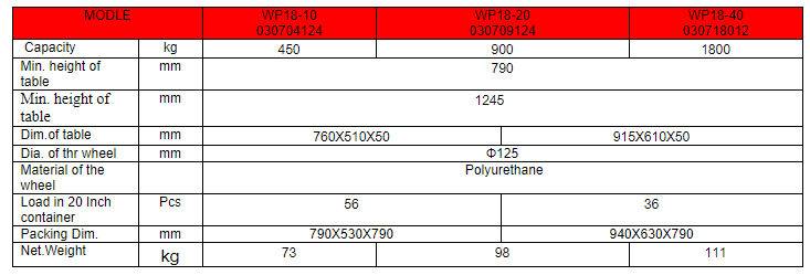 WP18 Series Hand Hydraulic Lift Tables